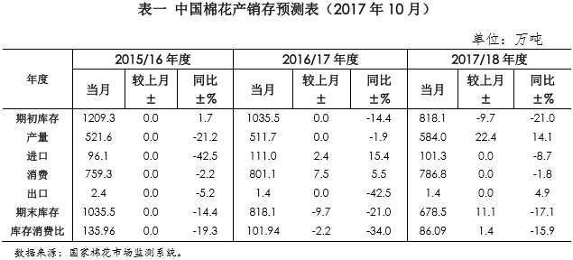 二、國內(nèi)棉花產(chǎn)銷存預(yù)測