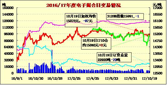 19日電子撮合交易成交量減少,合同均價多數(shù)收跌,成交積極合約主要集中于中遠(yuǎn)期合同,MA1803成交量最大,為1720噸;訂貨量減少,其中MA1712減少最多,為620噸;合同均價多數(shù)收跌。