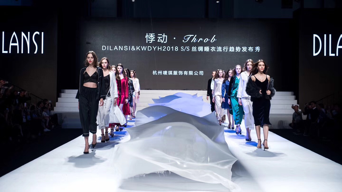 2017年10月20日,嘜琪服飾在杭州國際博覽中心,上演了一場以“悸動”為主題的2018 S/S 絲綢睡衣流行趨勢發(fā)布秀。