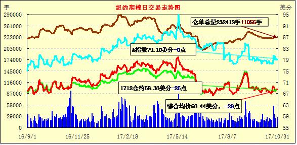 周二紐約期棉小幅收跌,1712合約收于68.38美分/磅,跌24點;1803合約收于68.34美分/磅,跌24點。當(dāng)日主力合約開盤后在窄區(qū)間內(nèi)波動,之后走低,當(dāng)日最低價格68.11美分/磅,買盤介入后1712合約回升并在收盤前進(jìn)入漲幅區(qū)間。目前德克薩斯寒冷天氣對當(dāng)?shù)匦禄ㄔ斐捎绊?,至本周德克薩斯新花不正常的比例較前周增加2個百分點,未來冷空氣還將向東移動,至南,北卡羅萊納州。