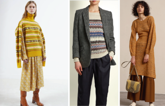 浮躁經(jīng)濟(jì)時(shí)代下,讓人們開始向往知識(shí)分子路線,尤其是在秋冬女裝的表現(xiàn)上,大量棕灰亞麻色調(diào)塑造的深沉內(nèi)斂感讓人物形象在無形中往知識(shí)分子靠攏。拎出“圖書館管理員”的主題形象就極具代表性,大地色造型毛衣、燈芯絨闊腿長(zhǎng)褲,經(jīng)典的費(fèi)爾島圖形,觸感表面的紋理經(jīng)典款西裝搭配手工造型,顯得嫻靜文雅,透著學(xué)者范兒。