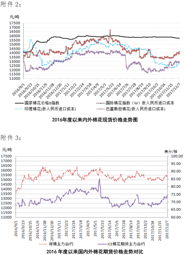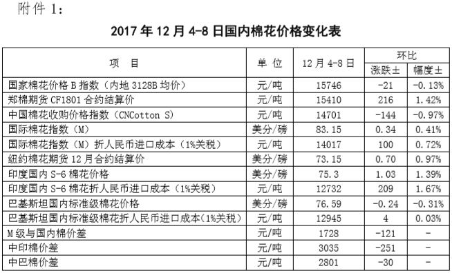 附件1:2017年12月4-8日國(guó)內(nèi)外棉花價(jià)格變化表