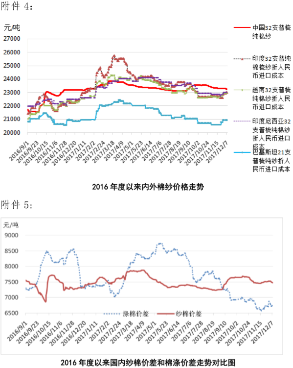 附件4:2016年度以來國(guó)內(nèi)外棉紗價(jià)格走勢(shì)圖
