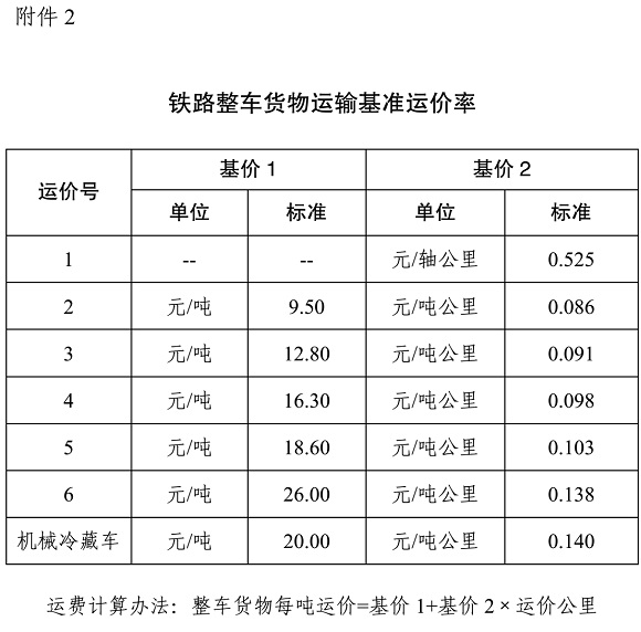 2.鐵路整車貨物運(yùn)輸基準(zhǔn)運(yùn)價(jià)率