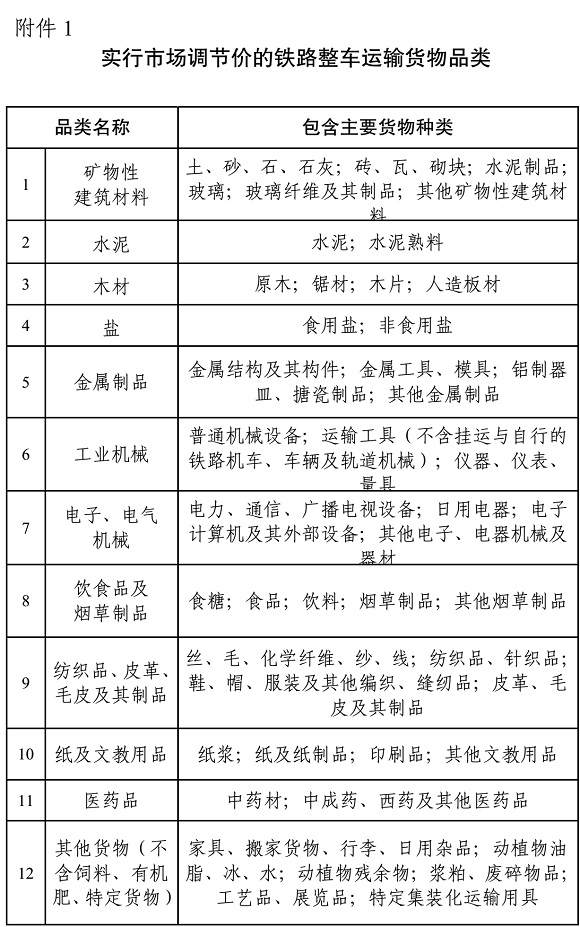 附件:1.實(shí)行市場(chǎng)調(diào)節(jié)價(jià)的鐵路整車運(yùn)輸貨物品類