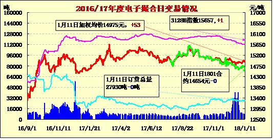 11日電子撮合交易成交量增加,整體合同均價(jià)全部收漲,整體合同上漲幅度較小,其中MA804成交量較大,為2640噸;活躍交投的合同多集中于遠(yuǎn)期合同,整體訂貨量總量維持不變,其中MA1805訂貨量最大,累計(jì)訂貨量為7480噸。截止到2018年1月10日24時(shí),新疆地區(qū)皮棉加工總量479.24萬(wàn)噸,同比增加23%。其中兵團(tuán)加工量148.79萬(wàn)噸,地方加工量330.46萬(wàn)噸。日增量1.22萬(wàn)噸。 棉花現(xiàn)貨市場(chǎng)維持,隨著時(shí)間的推進(jìn),目前留給商家銷售的時(shí)間窗口越來(lái)越少,出貨壓力較大。但部分貿(mào)易商反映近期棉花走貨相對(duì)尚可,主要是下游進(jìn)入階段性補(bǔ)貨期,一商家機(jī)采雙28、29級(jí)內(nèi)地庫(kù)價(jià)格在15900-16000元/噸毛重自提,而雙29批次已所剩不多。