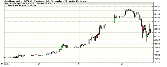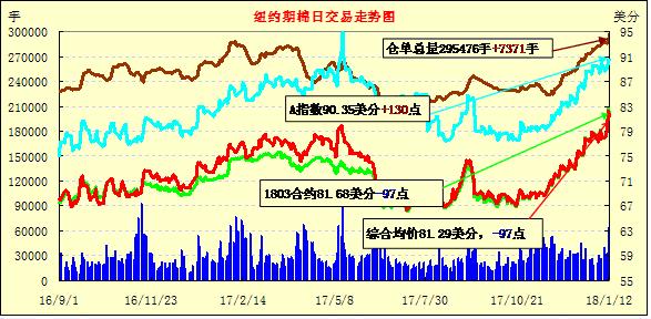 12日紐約期棉市場(chǎng)大幅波動(dòng),近月1803合約結(jié)算價(jià)81.68美分/磅,跌97點(diǎn),1805合約結(jié)算價(jià)81.96美分,跌100點(diǎn),1807合82.22美分,跌78點(diǎn)。當(dāng)日3月合約穩(wěn)定開盤后走強(qiáng),最高觸及84.65美分(+200點(diǎn)),創(chuàng)下該合約的歷史最高點(diǎn)。賣盤高點(diǎn)發(fā)力,市場(chǎng)調(diào)頭向下,后3月合約最低跌至80.3美分(-235點(diǎn)),日內(nèi)高低點(diǎn)波動(dòng)幅度達(dá)到435點(diǎn)。USDA供需月報(bào)發(fā)布后,結(jié)果基本符合市場(chǎng)預(yù)期,市場(chǎng)穩(wěn)定略有回彈,最終收于81美分之上。據(jù)美國(guó)農(nóng)業(yè)部(USDA)月度供需報(bào)告,預(yù)期2017/18年度全球棉花產(chǎn)量2633.8萬噸,較上月調(diào)增22萬噸;消費(fèi)量2630.7萬噸,調(diào)增27萬噸;期末庫存1911.5萬噸,調(diào)減4.4萬噸。