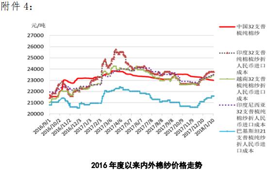 附件4:2016年度以來國內(nèi)外棉紗價格走勢圖