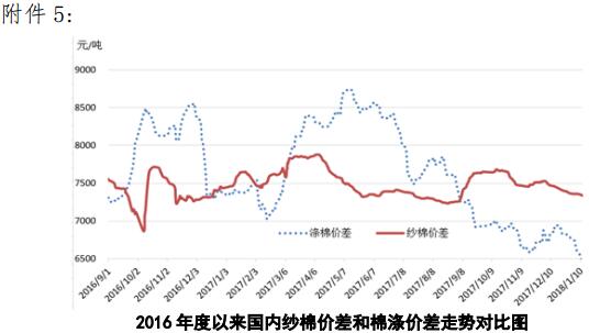 附件5:2016年度以來國內(nèi)紗棉價差和滌棉價差走勢對比圖