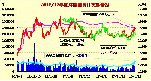 25日隔夜鄭棉震蕩,今日盤(pán)中震蕩揚(yáng)升,尾盤(pán)在平倉(cāng)盤(pán)壓制下回落,日線形成帶上影線的陽(yáng)線。日內(nèi)成交量萎縮,持倉(cāng)量減少?;久媲闆r:受近期期貨強(qiáng)勢(shì)影響,棉花現(xiàn)貨價(jià)格略顯堅(jiān)持,局部報(bào)價(jià)略有隨之上浮,商家出貨為主,整體走貨一般,山東庫(kù)2128/3128級(jí)強(qiáng)度26左右手摘疆棉報(bào)價(jià)在15900元/噸毛重自提,機(jī)采棉內(nèi)地庫(kù)報(bào)價(jià)在15800-16000元/噸原單毛重。地產(chǎn)3128級(jí)報(bào)價(jià)在14500-14800元/噸,通關(guān)美棉報(bào)在17200-17500元/噸,部分下游企業(yè)節(jié)前適量備貨,以防節(jié)后需求,但整體購(gòu)買(mǎi)意向一般。