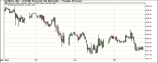 25日紐約期棉市場近跌遠漲,近月1803合約結(jié)算價81.88美分/磅,跌39點,1805合約結(jié)算價82.58美分,跌33點,1807合約83.06美分,跌30點,2019年度合約小幅收漲。當日3月合約穩(wěn)定開盤后穩(wěn)定在82.4-82.6美分之間波動,上沖缺乏買盤支持調(diào)頭向下,交易后期跌破82美分,終以小幅收跌。美棉出口周報推遲一天發(fā)布,交易商等待明確的方向指引。據(jù)CFTC報告,1月19日一周ICE期棉未點價銷售合約量有所增加,3月合約減少明顯,但5月合約和7月合約均有所增加。外圍美元指數(shù)小幅下跌,谷物期貨收漲。