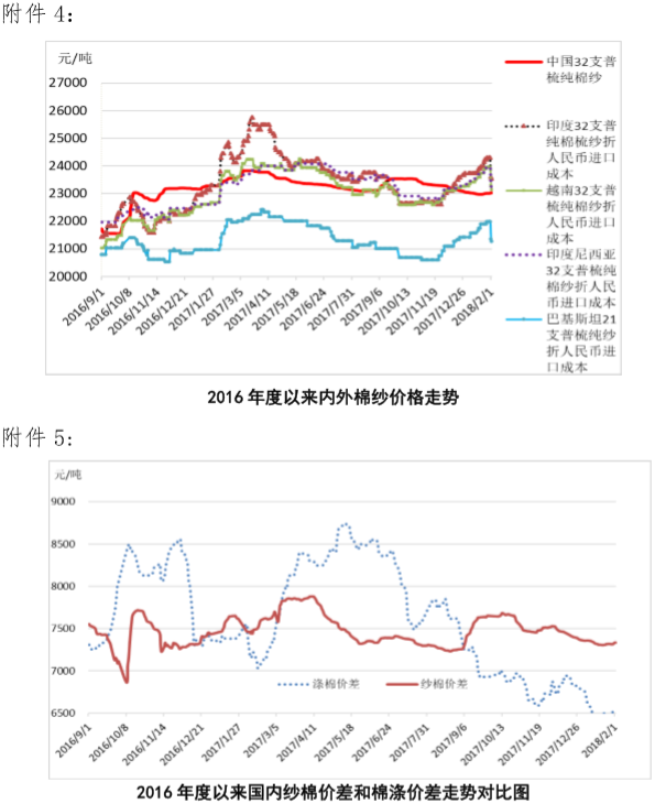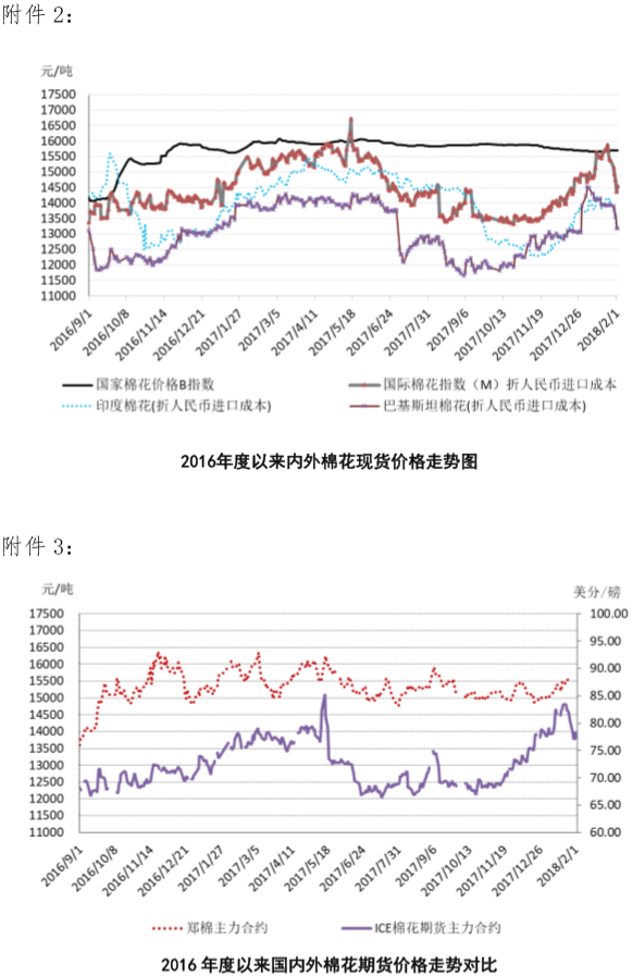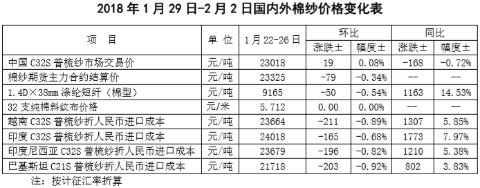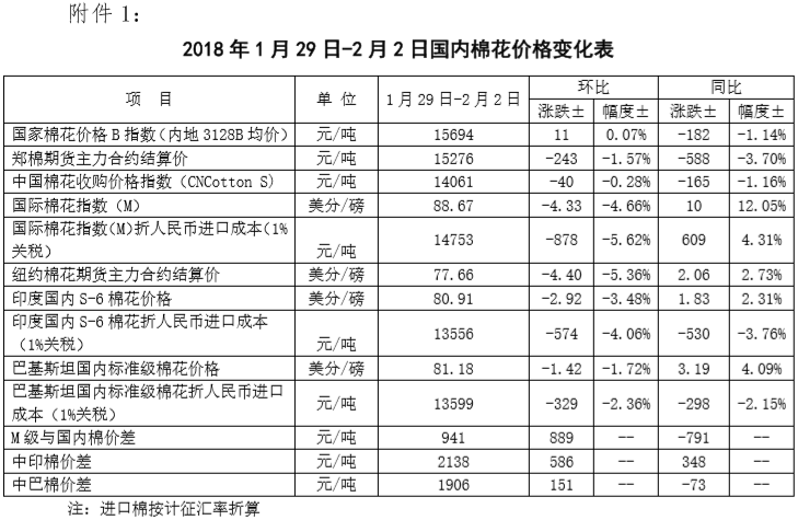 附件1:2018年1月29日-2月2日國內外棉花價格變化表