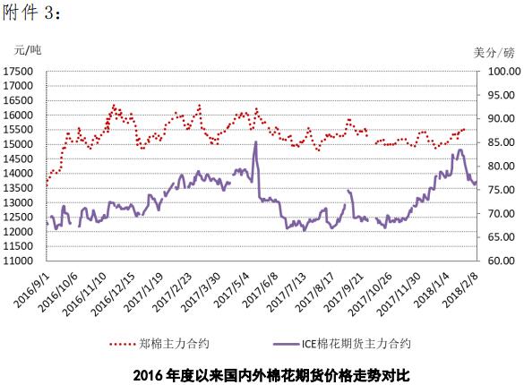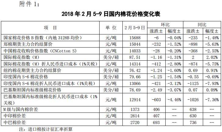 附件1:2018年2月5-9日國(guó)內(nèi)外棉花價(jià)格變化表