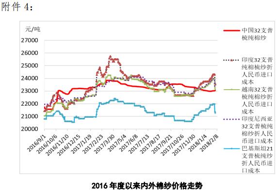 附件4:2016年度以來國(guó)內(nèi)外棉紗價(jià)格走勢(shì)圖