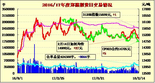 | 2月14日棉花期貨成交及持倉(cāng)排名表 | |||||||||