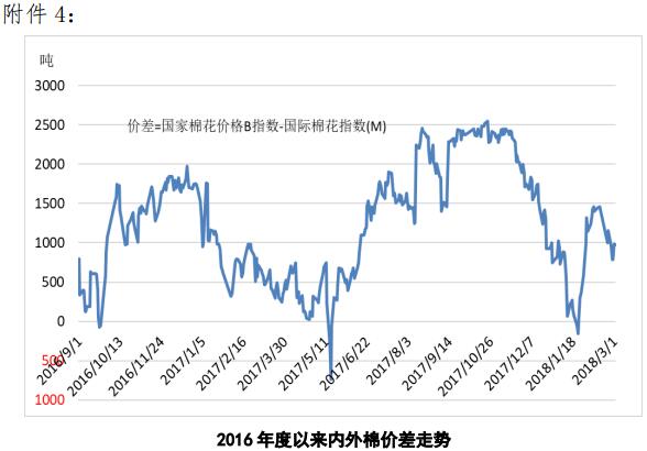 附件4:2016年度以來內(nèi)外棉價(jià)差走勢(shì)圖