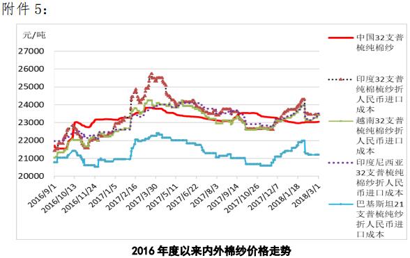 附件5:2016年度以來國內(nèi)外棉紗價(jià)格走勢(shì)圖