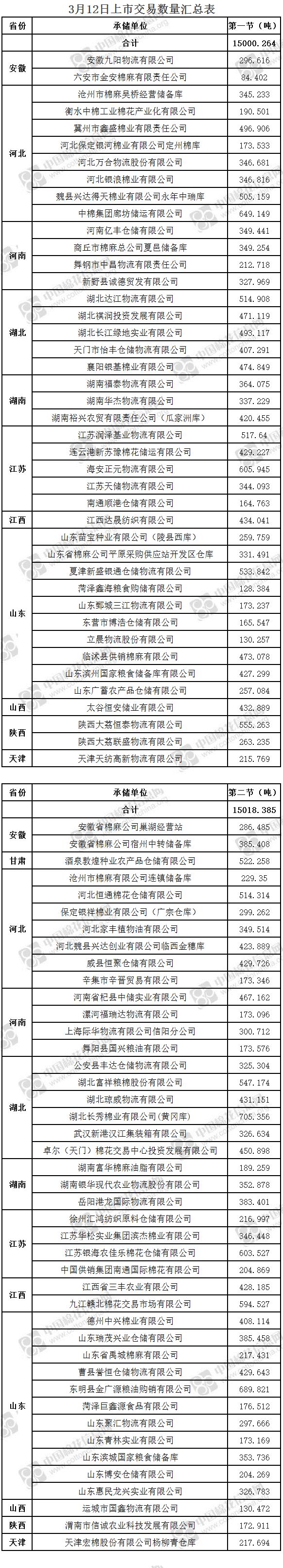 3月12日兩節(jié)共計(jì)輪出儲(chǔ)備棉30018.649噸。