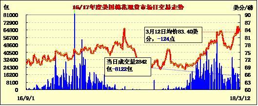 | 基于美國紐約期貨市場 | 標(biāo)準(zhǔn)級 | 中等級 | 漲跌 | 當(dāng)日成交 | 增減量 | 季度成交 | ||