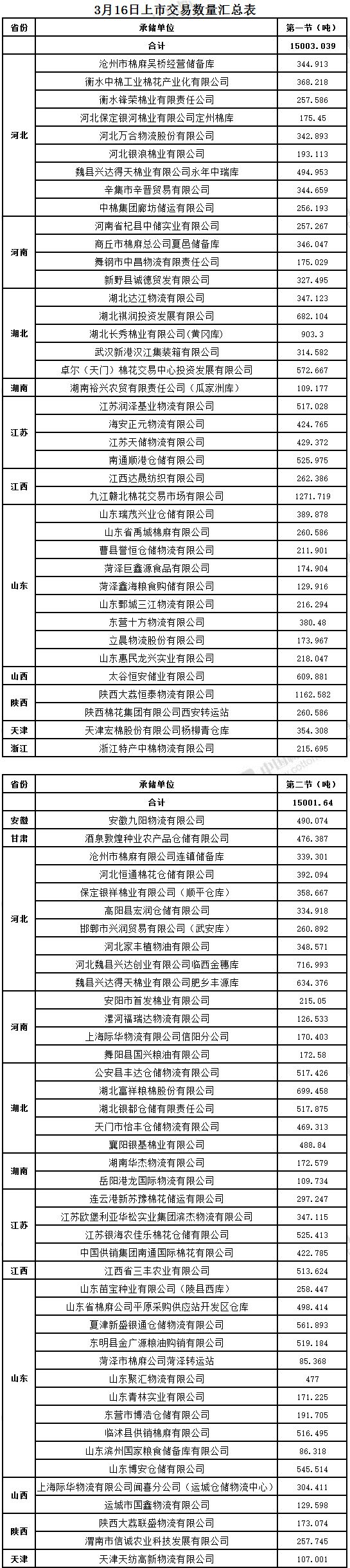 3月16日兩節(jié)共計(jì)輪出儲(chǔ)備棉30004.679噸。第一節(jié)銷(xiāo)售儲(chǔ)備棉15003.039噸,其中需要倒垛出庫(kù)76捆。第二節(jié)銷(xiāo)售儲(chǔ)備棉15001.64噸,其中需要倒垛出庫(kù)82捆。