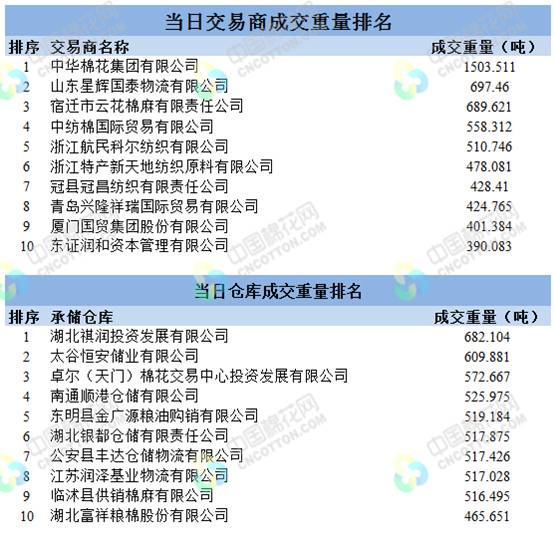 成交價(jià)格:最高成交價(jià)15480元/噸,新疆棉;最低成交價(jià)13130元/噸,地產(chǎn)棉;最高加價(jià)1380元/噸,新疆棉。