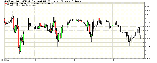 16日紐約期棉市場近跌遠(yuǎn)漲,1805合約結(jié)算價82.85美分,跌68點;1807合約結(jié)算價82.98美分,跌62點;1812合約結(jié)算價78.28美分,漲9點;1903合約結(jié)算價78.47美分,漲10點。其他合約上漲6-15點不等。當(dāng)日5月合約小幅高開,開盤后因上漲動力不足交易重心下行,在跌至當(dāng)日低點82.42美分處買盤入場,市場受支撐走高,但因上漲動力不足,最終小幅收跌。交易員持續(xù)關(guān)注7月合約與12合約之間價差走勢。近期西德州的旱情引起市場關(guān)注,分析指出一場有利降雨將使兩合約之間價差有所收窄。外圍美元指數(shù)上漲,大豆期貨上漲,玉米和小麥期貨下跌。