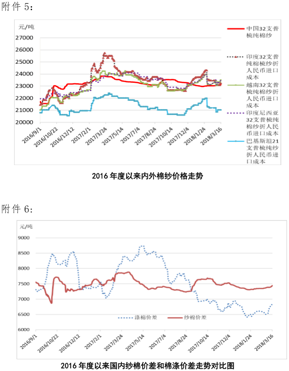 附件5:2016年度以來國內(nèi)外棉紗價(jià)格走勢圖