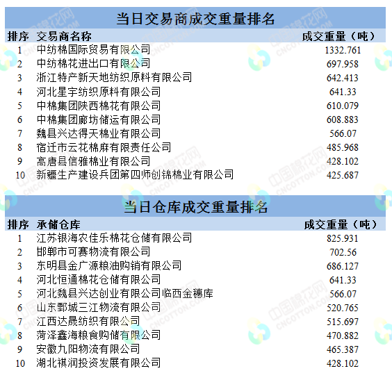 當(dāng)日地產(chǎn)棉成交3141.984噸,成交率18.27%,成交均價(jià)13789元/噸,平均加價(jià)180元/噸;新疆棉12813.657噸,成交率100%,成交均價(jià)14478元/噸,平均加價(jià)523元/噸。