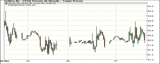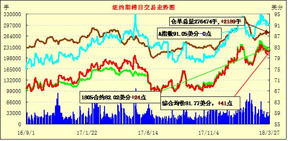 27日紐約期棉市場近漲遠跌。1805合約結算價82.02美分,漲24點;1807合約結算價82.44美分,漲22點;1812合約結算價77.62美分,跌8點;1903合約結算價77.80美分,跌8點。當日5月合約小幅高開,開盤后在81.80-82.20美分區(qū)間震蕩運行,后受支撐交易重心上行,至82.50美分處賣盤入場市場被打壓,一路向下跌至當日低點81.72美分,于低點處買盤發(fā)力,市場飆升至當日高點,后受獲利了結盤打壓回落,最終以小幅上漲收盤。1805合約結束連續(xù)四日跌勢。美國德州天氣引發(fā)市場持續(xù)關注,目前西德州旱情持續(xù),且近期尚無降雨預報。外圍美元指數(shù)上漲,玉米期貨上漲,大豆和小麥期貨下跌。
