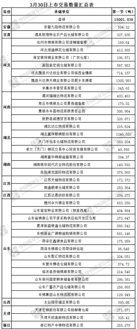 3月30日兩節(jié)共計(jì)輪出儲(chǔ)備棉30000.079噸。第一節(jié)銷(xiāo)售儲(chǔ)備棉15001.038噸,其中需要倒垛出庫(kù)84捆。第二節(jié)銷(xiāo)售儲(chǔ)備棉14999.041噸,其中需要倒垛出庫(kù)80捆。