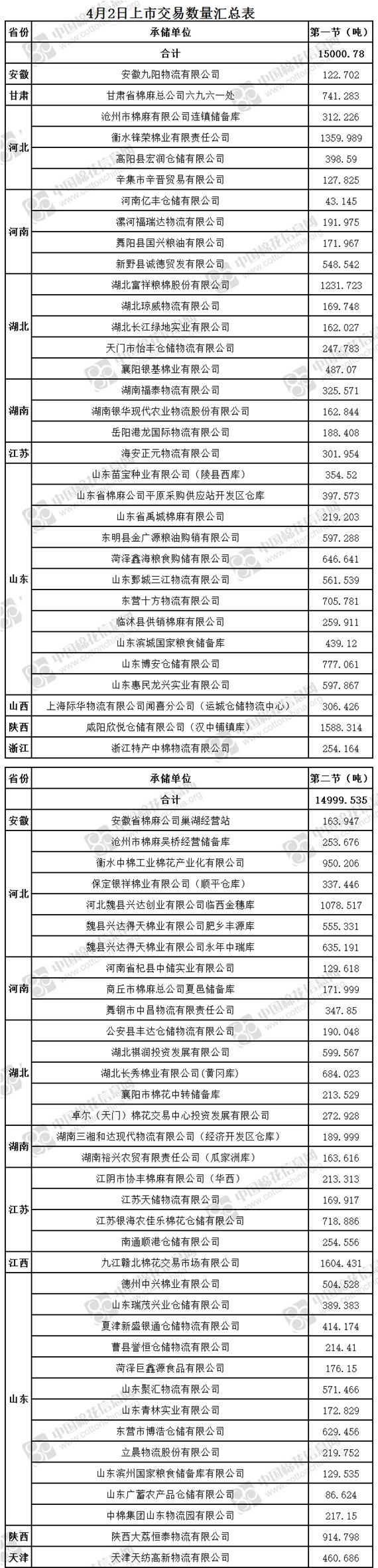 4月2日兩節(jié)共計輪出儲備棉30000.315噸。第一節(jié)銷售儲備棉15000.78噸,其中需要倒垛出庫78捆。第二節(jié)銷售儲備棉14999.535噸,其中需要倒垛出庫77捆。