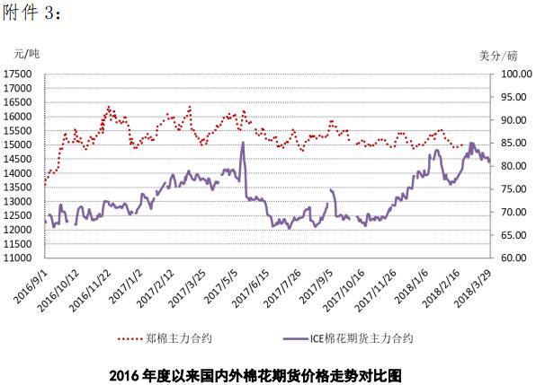 附件3:2016年度以來國內(nèi)外棉價走勢對比圖