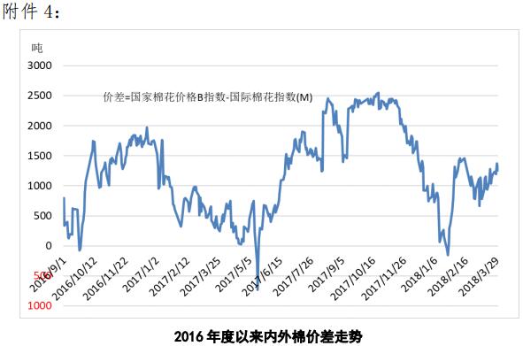 附件4:2016年度以來內(nèi)外棉價差走勢圖