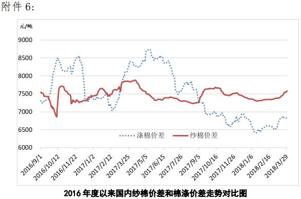 附件6:2016年度以來國內(nèi)紗棉價差和滌棉價差走勢對比圖