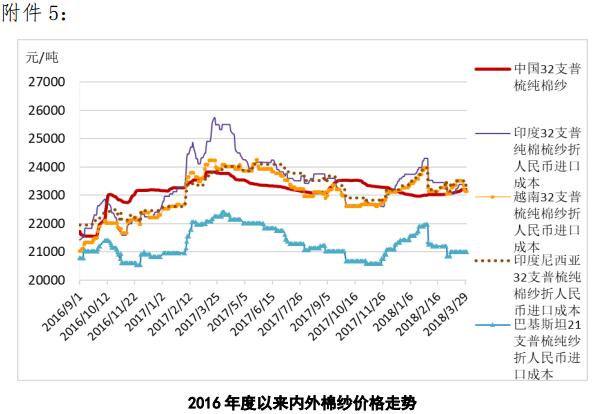 附件5:2016年度以來國內(nèi)外棉紗價格走勢圖