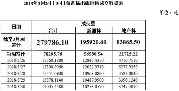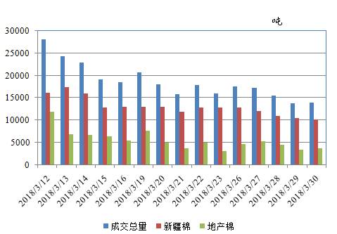 2017/2018年度儲(chǔ)備棉輪出截至3月30日成交量走勢(shì)