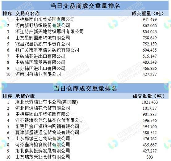 地產(chǎn)棉成交7429.178噸,成交率36.36%,成交均價13676元/噸,平均加價107元/噸,最高成交價15030元/噸,最低成交價12970元/噸;新疆棉成交9568.75噸,成交率100%,成交均價14314元/噸,平均加價675元/噸,最高成交價15910元/噸,最低成交價13520元/噸。