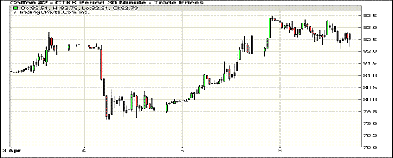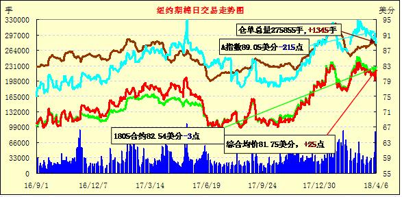 6日紐約期棉市場(chǎng)基本收平,近月1805合約結(jié)算價(jià)82.54美分/磅,跌3點(diǎn),1807合約結(jié)算價(jià)82.18美分,漲3點(diǎn),1812合約77.94美分,漲7點(diǎn)。當(dāng)日5月合約高開,市場(chǎng)整日交易多圍繞83美分波動(dòng),交易后期回歸82.5美分一線波動(dòng),終以微跌收盤。中美貿(mào)易戰(zhàn)持續(xù),中國(guó)對(duì)美棉進(jìn)口擬加征25%關(guān)稅,市場(chǎng)關(guān)注后續(xù)影響。美國(guó)德州持續(xù)干旱,短期內(nèi)尚無降雨預(yù)期,對(duì)市場(chǎng)形成支持。
