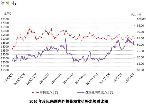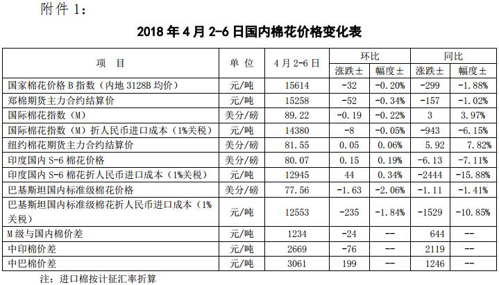 附件1:2018年4月2-6日國內(nèi)外棉花價(jià)格變化表