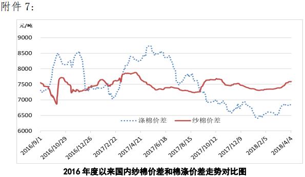 附件7:2016年度以來國內(nèi)紗棉價(jià)差和滌棉價(jià)差走勢對比圖