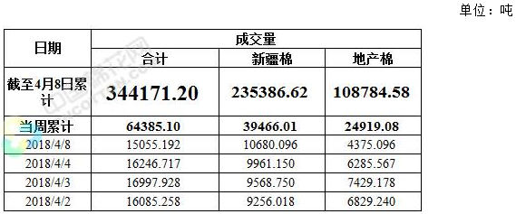 2017/2018年度儲備棉輪出截至4月8日成交量走勢
