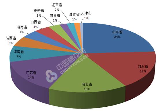 2017/2018年度儲備棉出庫銷售截至4月8日主要省份累計成交情況