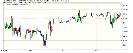 12日紐約期棉近跌遠(yuǎn)漲,1805合約結(jié)算價(jià)83.69美分,跌14點(diǎn);1807合約結(jié)算價(jià)83.00美分,跌41點(diǎn);1812合約結(jié)算價(jià)78.83美分,漲20點(diǎn);1903合約結(jié)算價(jià)78.91美分,漲17點(diǎn)。其他合約上漲13-20點(diǎn)不等。當(dāng)日7月合約小幅高開,開盤后缺乏有利支撐交易重心下行,后買盤低點(diǎn)發(fā)力,市場上行至當(dāng)日高點(diǎn)83.57美分,美棉出口周報(bào)發(fā)布后,雖裝運(yùn)量勢頭依然良好,但成交量萎縮遠(yuǎn)不及預(yù)期,市場應(yīng)聲走低,后震蕩運(yùn)行,最終因上漲動(dòng)力不足小幅收跌。據(jù)美國農(nóng)業(yè)部(USDA),3.29-4.5日一周美國凈簽約出口2017/18年度陸地棉40665噸(含新簽約68629噸,另取消27964噸前期訂單),較前一周減少51%,較近4周平均簽約量減少46%;裝運(yùn)2017/18年度陸地棉113308噸,較前一周增加10%,較近4周平均增加16%。外圍美元指數(shù)上漲,玉米和大豆期貨上漲,小麥期貨下跌。