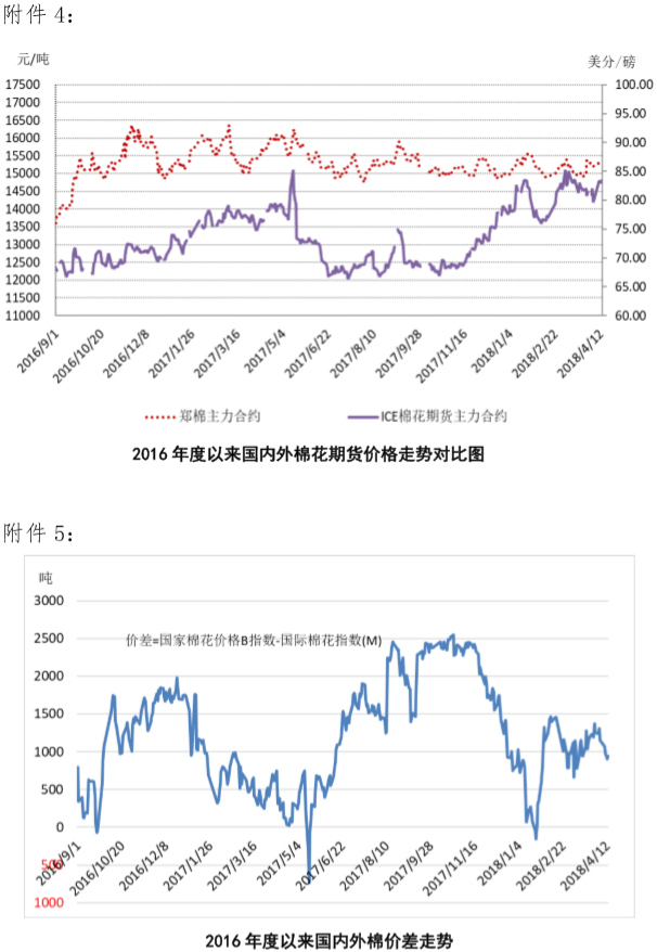 附件1:2018年4月9-13日國(guó)內(nèi)外棉花價(jià)格變化表
