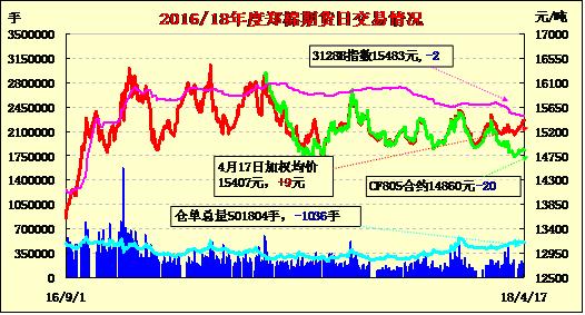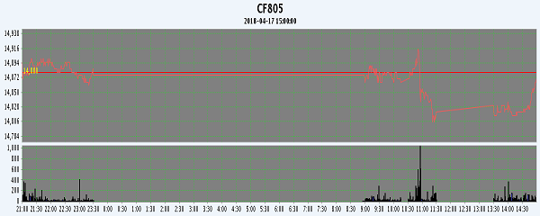 | CF805 | 14895 | 14920 | 14805 | 14870 | 14860 | -20 | 17512 | -5922 | 13871542 | 89396 | -5912 |