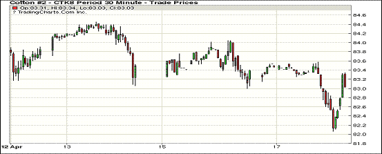17日紐約期棉市場(chǎng)近跌遠(yuǎn)漲。1805合約結(jié)算價(jià)83.13美分,跌12點(diǎn);1807合約結(jié)算價(jià)82.95美分,跌27點(diǎn);1812合約結(jié)算價(jià)78.40美分,跌14點(diǎn);1903合約結(jié)算價(jià)78.46美分,跌21點(diǎn)。當(dāng)日7月合約小幅高開,開盤后在83-83.60美分區(qū)間震蕩運(yùn)行,后賣盤入場(chǎng)市場(chǎng)承壓走低跌破82美分,至當(dāng)日低點(diǎn)81.97美分處買盤發(fā)力,交易重心走高,最終小幅收跌。西德州區(qū)域預(yù)計(jì)本周晚些時(shí)候?qū)⒊霈F(xiàn)降雨天氣,當(dāng)?shù)孛揶r(nóng)翹首以待,希望能使旱情得以緩解。外圍美元指數(shù)上漲,大豆和小麥期貨上漲,玉米期貨下跌。