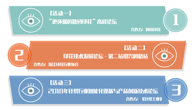 豐富的現(xiàn)場(chǎng)活動(dòng)也是柯橋紡機(jī)及印花工業(yè)展較以往做出的突破點(diǎn)和提升。為了給參與展會(huì)的每一個(gè)人創(chuàng)造更多的收獲和價(jià)值,主辦方通過(guò)與國(guó)內(nèi)權(quán)威的行業(yè)協(xié)會(huì)及媒體機(jī)構(gòu)合作,精挑細(xì)選了推出了三場(chǎng)圍繞著印花行業(yè)技術(shù)、紡織設(shè)備智能創(chuàng)新等符合行業(yè)熱點(diǎn)難點(diǎn)話題的論壇活動(dòng)。論壇將針對(duì)現(xiàn)今行業(yè)所需,涵蓋政策、市場(chǎng)、技術(shù)等不同層面,相信會(huì)讓每一位現(xiàn)場(chǎng)參與者收獲滿滿。