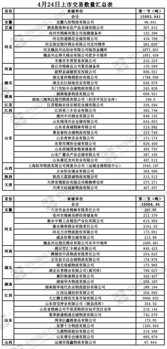 4月24日兩節(jié)共計輪出儲備棉30008.101噸。第一節(jié)銷售儲備棉15003.641噸,其中需要倒垛出庫77捆。第二節(jié)銷售儲備棉15004.46噸,其中需要倒垛出庫81捆。