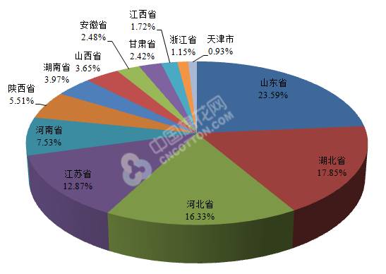 截至2018年4月20日,2017/2018年度儲備棉輪出累計掛牌87萬噸,其中新疆棉31萬噸、地產棉56萬噸;累計成交47萬噸,成交率54%,其中新疆棉成交31萬噸,成交率99.99%,地產棉成交16萬噸,成交率28%;累計成交企業(yè)460家,紡織企業(yè)成交22萬噸,占比47%;貿易商成交25萬噸,占比53%。