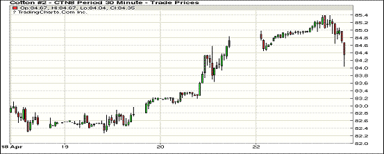 23日紐約期棉市場(chǎng)整體收跌。1805合約結(jié)算價(jià)83.19美分,跌228點(diǎn);1807合約結(jié)算價(jià)84.12美分,跌61點(diǎn);1812合約結(jié)算價(jià)79.35美分,跌8點(diǎn);1903合約結(jié)算價(jià)79.21美分,跌3點(diǎn)。當(dāng)日7月合約小幅高開(kāi),開(kāi)盤(pán)后維持震蕩上行趨勢(shì),至當(dāng)日最高點(diǎn)85.39美分處賣(mài)盤(pán)入場(chǎng),交易重心走低,后買(mǎi)盤(pán)低點(diǎn)發(fā)力,市場(chǎng)受支撐上行,在臨近收盤(pán)處不敵賣(mài)盤(pán)打壓,最終以跌勢(shì)收盤(pán)。上周末西德州地區(qū)終于迎來(lái)降雨天氣,雖然僅為局部陣雨,且降雨量很小(僅1.3厘米),但還是使近期持續(xù)干旱的土地得以改善和緩解。本周中期預(yù)計(jì)該地區(qū)有可能再出現(xiàn)降雨,當(dāng)?shù)剞r(nóng)民翹首以待。受美國(guó)或?qū)⒔獬龑?duì)俄鋁的制裁的影響,美國(guó)金屬制造類(lèi)股大跌。外圍美元指數(shù)上漲,玉米期貨上漲,大豆和小麥期貨下跌。